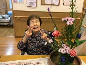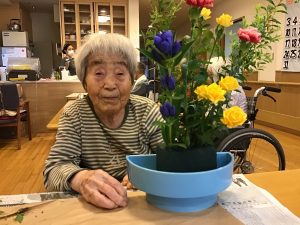 華道クラブを行いました!これから咲く花、満開な花と色々ありましたが、皆様楽しんで生けられていました😀