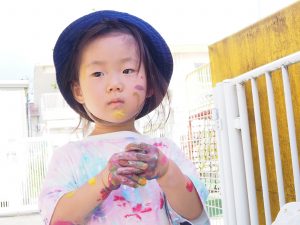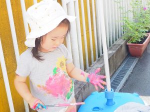 たらいの水に手を浸して心地良さを感じたり、泥んこ遊びやボディーペイントなど