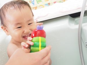 0歳児ひよこ組の子どもたちは、沐浴をして汗を流し、暑い夏も快適に過ごしました🐣
