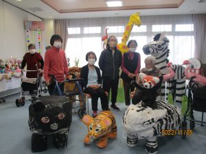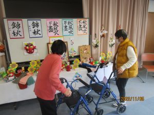 ケアハウスや特養等、他事業所からもいろいろな展示品があり、華やかに飾られていました!
