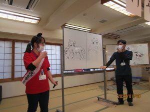 他にも職員の絵心対決や年齢当てクイズ、利用者様による福笑いと盛り沢山で新年早々沢山の笑顔が見ることができ年明けから庄の里デイサービスは良いスタートが切れました!!!