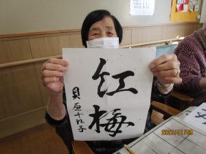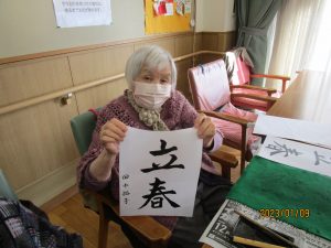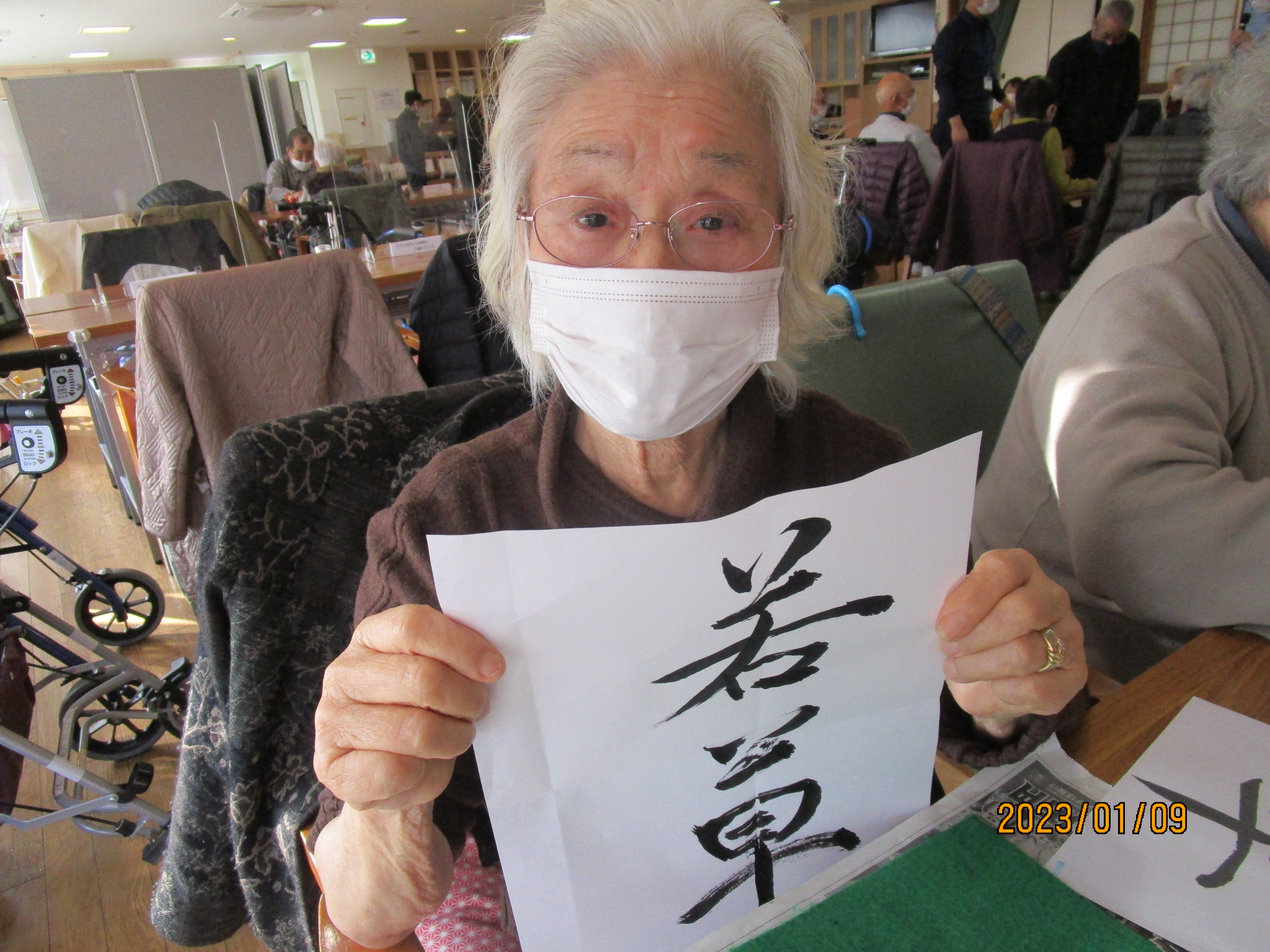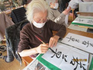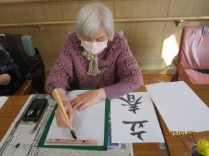 庄の里デイサービスでは午後の行事として月に2回程度書道を行っています。