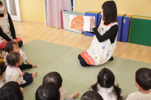 2月3日に豆まき会を行いました。『おなかのなかにおにがいる』の絵本を見ながら節分の意味を知った子どもたち!