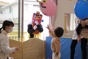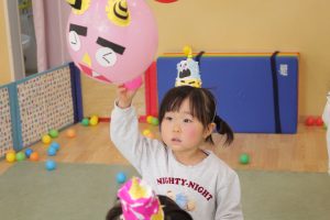 泣き虫鬼、怒りんぼう鬼の大きな口に玉を入れたり、風船の鬼にボールを投げたりして鬼を追い出しました!(^^)!