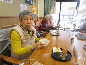 2月になり、まだまだ寒いですが、庄の里デイサービスに通われていらっしゃるご利用者様方は、皆様とてもお元気です。毎月2回の、お茶会は、ご利用者様ご自身で抹茶を点てられていらっしゃいます。「美味しい」と、皆様とても喜ばれています。