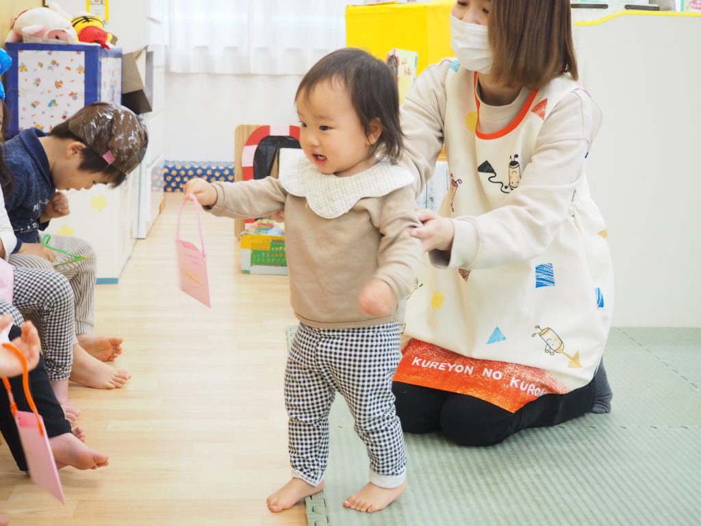 いつも小さいお友達にも優しくしてくれたうさぎ組のお兄ちゃん、お姉ちゃんに0・1歳児の子どもたちから歌や手作りのプレゼントがありましたよ(#^^#)