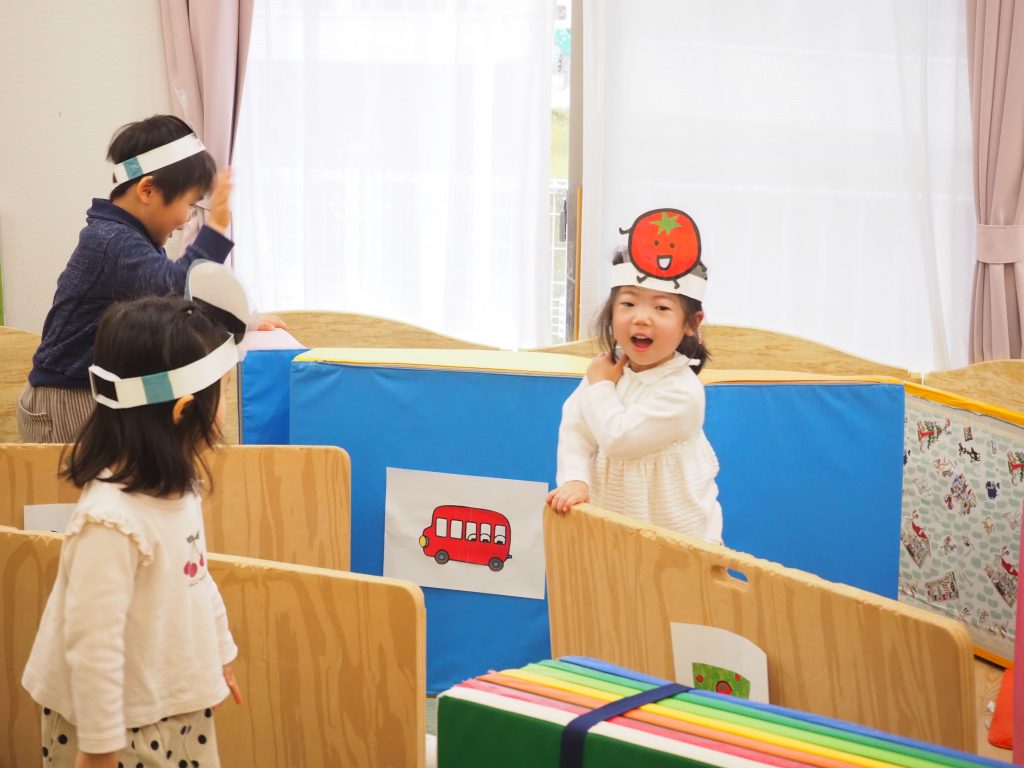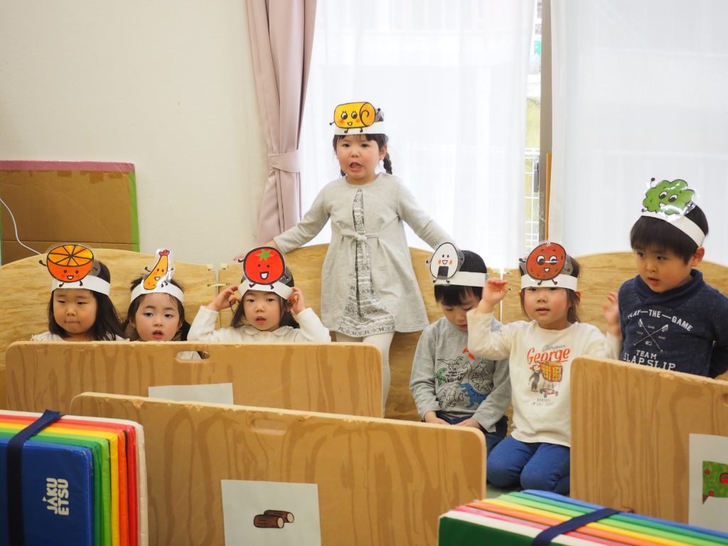 うさぎ組さんは、『おべんとうバスのかくれんぼ』の劇を披露してくれました(^^♪ セリフもバッチリ!(^^)! さすがうさぎ組さんです!!