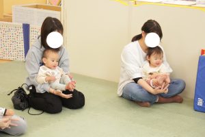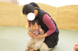 いつもは保育士とするわらべうたを、お母さんにしてもらって、にこにこ笑顔でした!