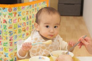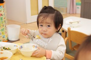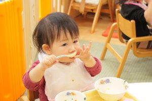 スプーンを使って自分で食べようとするようになりました🍚
