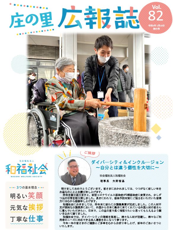 第82号 広報誌 皆様、新年いかがお過ごしでしょうか。 今冬は例年ほど寒さも厳しくないように感じられ、庄の里ご利用者から…