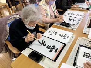 デイサービスでは新年初の書道を行いました(*^^*)