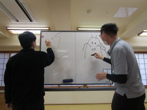 新年会の最後には職員対抗絵描き対決で勝負しました!(^^)!