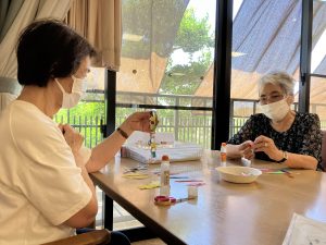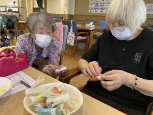 折り紙で飾りを作るのは何年振りだろう?なんてお話をされながら、昔を懐かしみながら作られていました(^^)