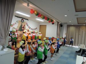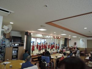 大好きな踊りの衣装を着て、元気いっぱいダンスを踊りました。おじいちゃんおばあちゃんとふれあって、笑顔いっぱいの子ども達。お土産にお菓子もいただき、思い出いっぱいのクリスマスになりました。