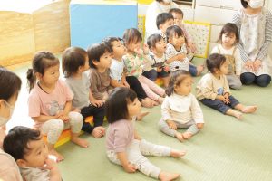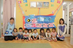 上の写真は、2歳児うさぎ組の子どもたちが、こいのぼりの歌をうたってくれている様子です🌞