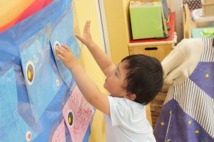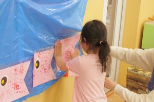 みんながそれぞれ制作したこいのぼりを、大きなこいのぼりにペタリと貼り付けました🎏