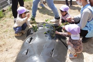 5月半ばに、うさぎ組の子どもたちは芋の苗植えに行ってきました🌱🍠