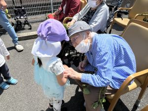 「かわいいね」「よく来たね、また遊びに来てね」と優しい声掛けをしていただき、子どもたちも嬉しそうでした。