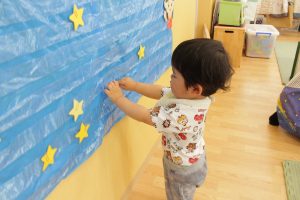 お星さま釣りをして、天の川を壁に作って、季節を感じた子どもたち。