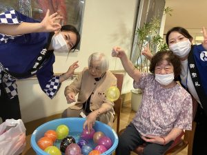 お祭り気分を味わって頂こうと…ヨーヨー釣り、焼き鳥、ポテトフライ、アイス、ドリンクを出店★