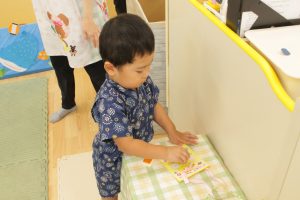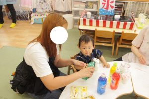 9月に0歳児と1歳児の参観日を兼ねて、秋祭りを行いました!