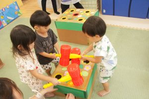 かき氷作りをしたり、もぐらたたきをしたり、ひんやりウォーターベッドをふみふみしてみたり・・・