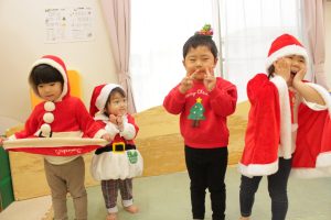 この日もクリスマスを意識した衣装での登園で、サンタクロースやツリー、おしゃれな服装を着てきてくれました😌