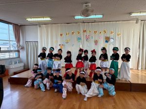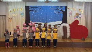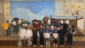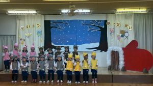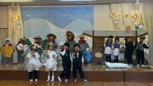 令和8年1月22日に生活発表会を行いました。3,4,5歳児がたくさんの保護者さんの前で、歌や劇、合奏やリズム表現を披露しました。