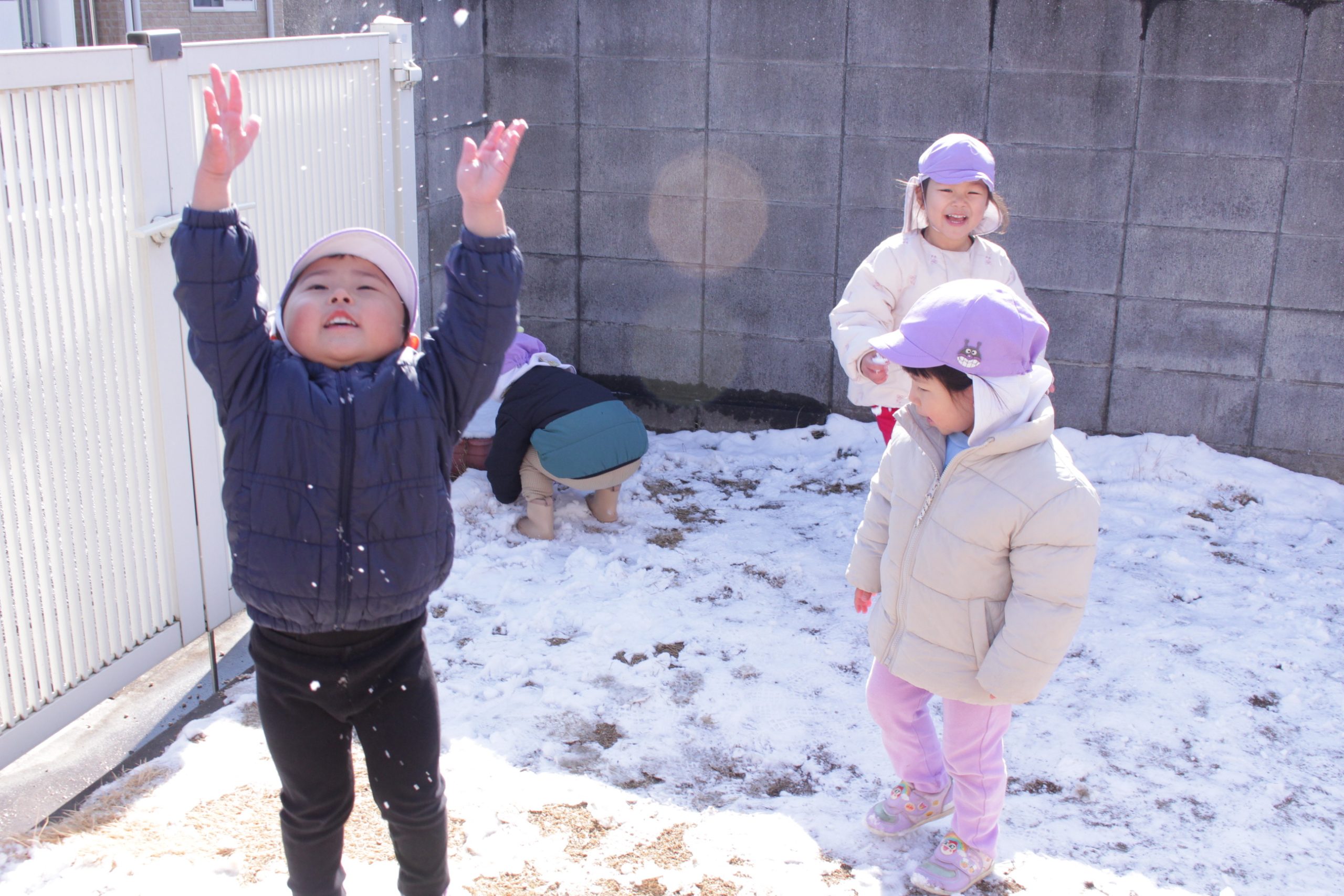 こんにちは!庄なかよし小規模保育園です😄 2月の雪が降った日に、雪遊びをしました! 元気な子どもたちは、さっそく雪を集め…