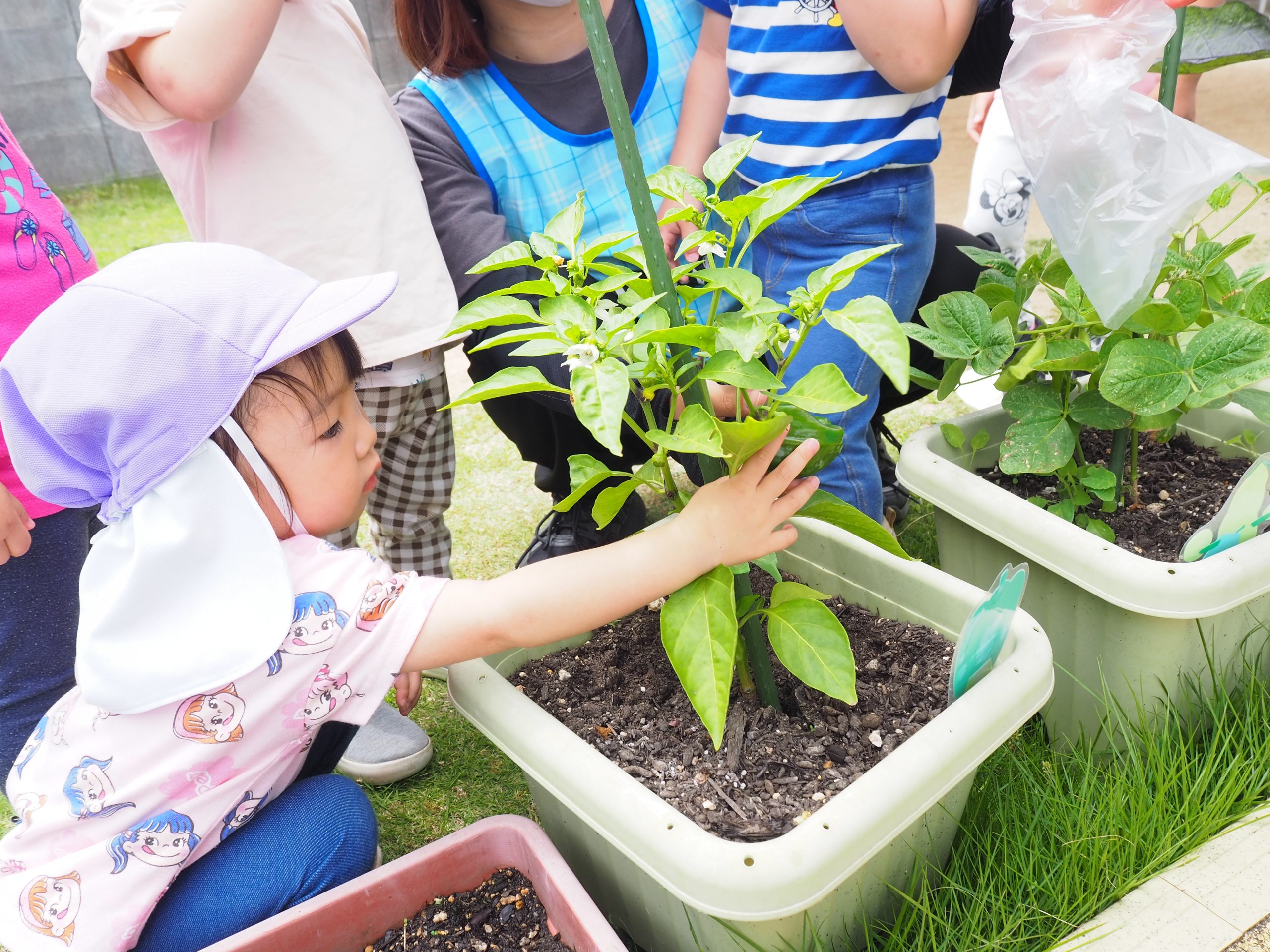 こんにちは!庄なかよし小規模保育園です😄 5月に植えていた野菜の苗が、すくすくと育ち、おいしそうな実をつけてくれました!…