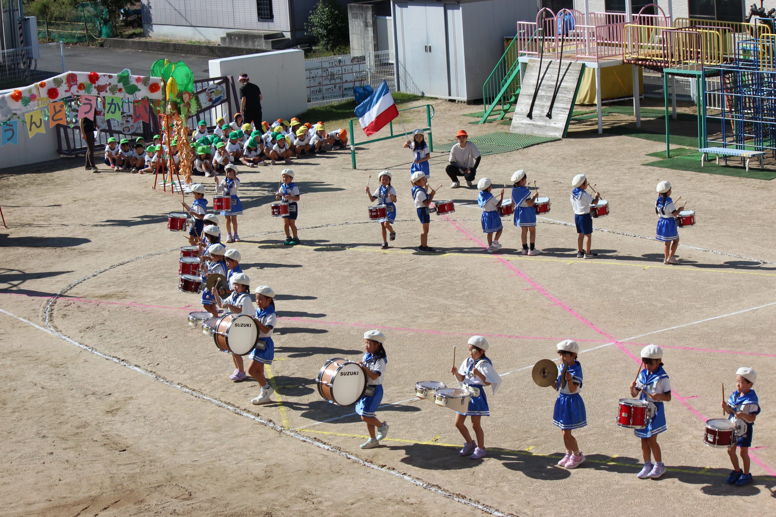 庄保育園です。 気持ちの良い秋晴れの下、運動会を開催することができました。 3歳児は、ジャングルの生き物に…