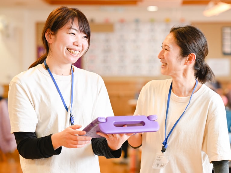 また、ICT・介護ロボットの活用など、最新の介護、技術を積極的に取り入れています。業務を効率化し、できるだけご利用者様に寄り添う時間を多く持てるよう、チームで工夫しながら、ハードとソフト、身体面と精神面、ともに配慮した働きやすい環境づくりを全員で目指しています。そして、年齢や経験を問わず、しっかり頑張った職員さんをしっかり評価することが出来る評価制度も庄の里の自慢のひとつです。