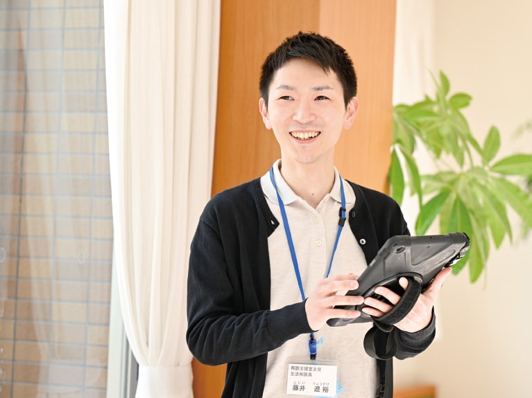 - 良かったなと感じることは、ご家族・ご入居者様から「困ったから藤井さんに相談した」と言っていただけた時です。今までの関わりで信頼関係を築く事が出来ていたんだと感じ、とても嬉しく自信にもつながります。